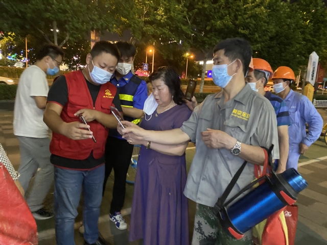 會后,集團(tuán)迅速組織黨員干部組成志愿者隊(duì)伍,聯(lián)系建鄴區(qū)認(rèn)領(lǐng)疫情防控志愿工作,趕赴多個(gè)社區(qū)協(xié)助防疫一線的核酸檢測工作。集團(tuán)志愿者隊(duì)伍每組都由集團(tuán)部室、公司負(fù)責(zé)人帶隊(duì),進(jìn)入工作現(xiàn)場后,他們迅速熟悉掌握工作要求,立即上崗?fù)度胫驹阜?wù)。引導(dǎo)前來進(jìn)行檢測的市民嚴(yán)守疫情防控要求有序排隊(duì)進(jìn)場,安撫待檢人員相互配合支持,指導(dǎo)幫助登記掃碼加快工作速度,為老人和困難市民提供方便服務(wù)……在他們與其他志愿者的共同努力下,這幾個(gè)檢測點(diǎn)都秩序井然,有效推進(jìn)了檢測速度,減少了市民等待時(shí)間。志愿者們把保障核酸檢測有序高效推進(jìn)作為此時(shí)踐行初心使命的擔(dān)當(dāng),忘記了炎熱夏夜忙碌的一身汗水,忘記了蚊蟲繞身不停的叮咬,為筑起群眾生命健康防線獻(xiàn)出了一份力量。