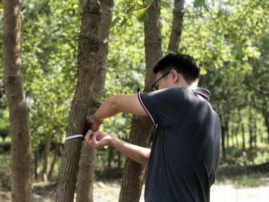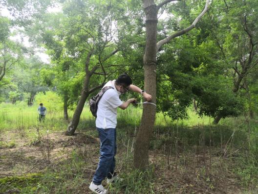 近期“秋老虎”發(fā)威,炎炎烈日、驕陽似火,林中蚊蟲叮咬,地面起伏、時有溝壑。但沒有一個人叫苦喊累,認(rèn)真的用樹尺測量每一棵苗木,并詳細(xì)記錄。至太陽西下,大家用腳丈量了500多畝田地,測量了10000余株苗木。“往年兩期的苗木盤點,我要盤四五天才能盤點完,現(xiàn)在有大家的幫忙,不到一天就完成了,工作效率大大提高了?!泵缙载?fù)責(zé)人高興地說。