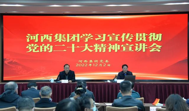 根據(jù)中央和省市委、市國資委黨委部署要求,12月2日下午,河西集團召開學習宣傳貫徹黨的二十大精神宣講會,邀請市委宣講團成員、市委黨??蒲刑幪庨L高信奇教授做專題宣講,進一步引導集團廣大黨員干部職工全面深入學習宣傳貫徹黨的二十大精神,切實把思想和行動統(tǒng)一到黨的二十大精神上來,更加深刻領悟“兩個確立”的決定性意義,不斷增強“四個意識”、堅定“四個自信”、做到“兩個維護”。會議由集團黨委副書記、董事繆昌根主持。集團領導、全體中層干部及集團下屬各公司黨務工作者參加會議。