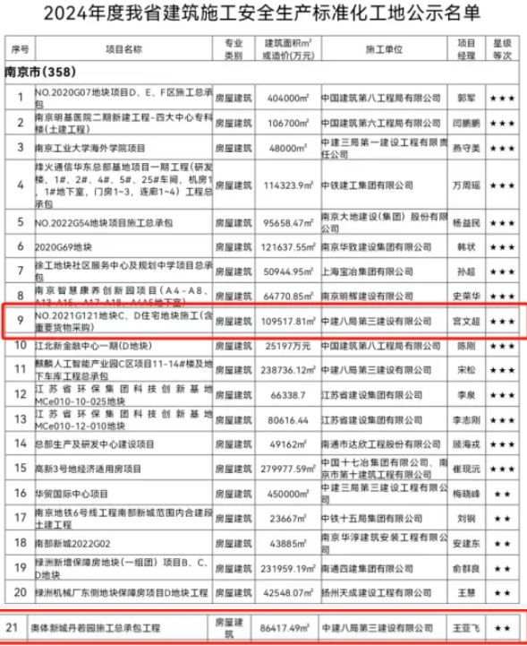 根據(jù)《南京市建設(shè)工程市級標(biāo)準(zhǔn)化工地評審辦法》,經(jīng)過嚴(yán)格評審程序,南京市城鄉(xiāng)建設(shè)委員會公布了2024年下半年南京市房屋市政工程安全文明標(biāo)準(zhǔn)化工地名單。河西集團(tuán)奧體建設(shè)開發(fā)的丹若園、江尚紫薇、瑞香園、錦尚紫蘭四個項(xiàng)目脫穎而出,獲此殊榮。這些項(xiàng)目涵蓋不同施工階段,均展現(xiàn)了奧體建設(shè)對安全文明施工的高度重視,為集團(tuán)后續(xù)同類項(xiàng)目施工管理樹立了良好典范。